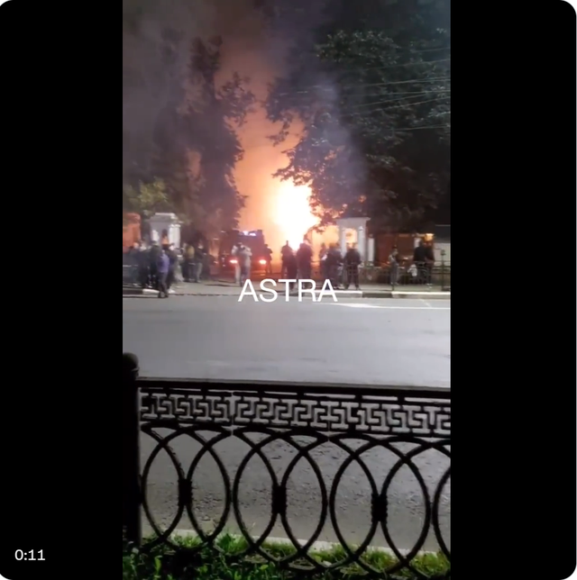 在莫斯科东北的雅罗斯拉夫尔,前军事委员会大楼起火。