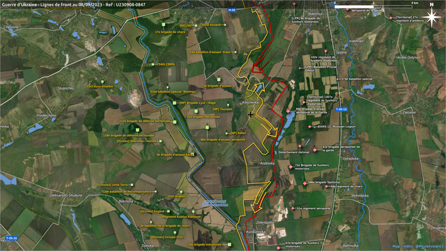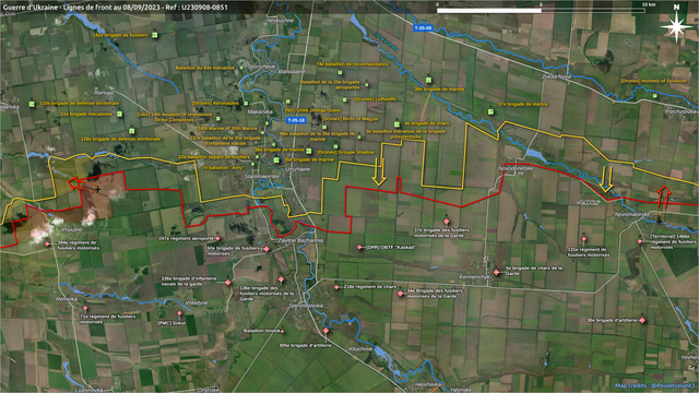 南部战线东战场, 新顿涅茨克-新马约尔斯克-克尔曼奇克(kermenchyk)方向, 乌军已渡过沙坦卡河,在新马约尔斯克北郊站稳脚跟。目前乌克兰第37海军陆战旅正在村内与俄罗斯第1466机动步枪团进行激烈战斗。