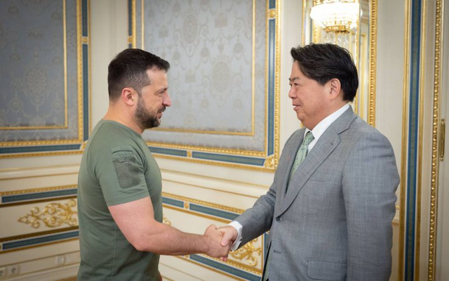 日本外相林义正首次访问基辅,并宣布向乌克兰提供2台大型变压器和24辆带起重机的卡车。