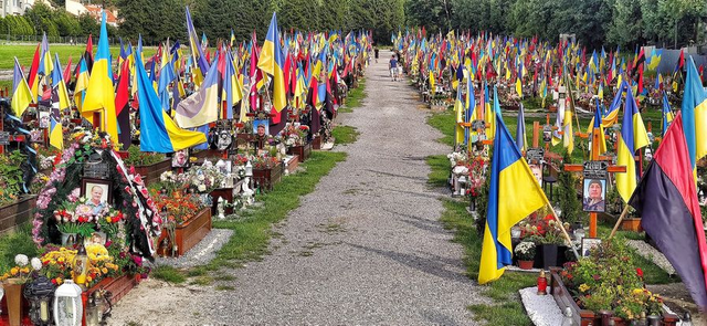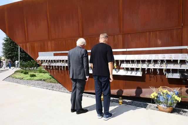 英国前首相鲍里斯·约翰逊在利沃夫Lychakiv公墓向阵亡的乌克兰保卫者致敬,并与市长安德烈·萨多夫伊一起参观了位于市中心的“天堂百人”纪念碑。