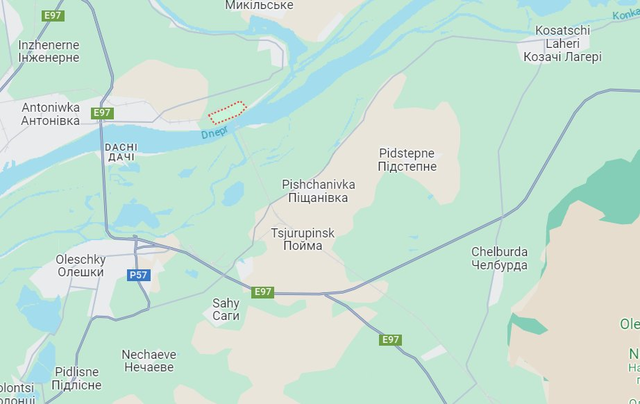 昨日乌军一支步兵分队在普里德尼普罗夫斯克定居点(下图虚线框处)以南登陆,在波伊马(Poima)和佩斯恰夫卡( Peschanivka)方向形成了另一个桥头堡。乌军在第聂伯河左岸的力量进一步扩大。
