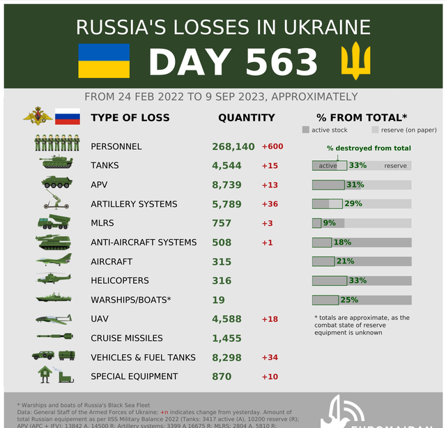 2023年9月10日,俄乌战争进入第564天。