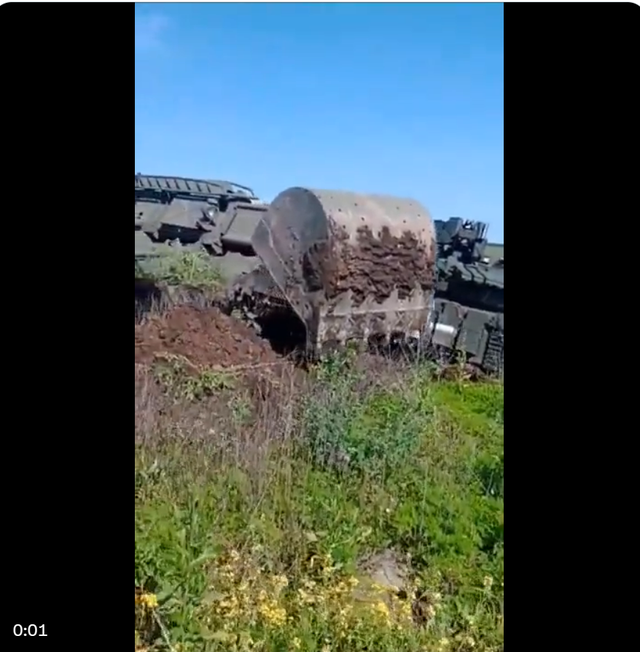 一辆德国制造的2A1达克斯工程车,在扎波罗热挖出了一辆被卡住的乌克兰T-80BV坦克。
