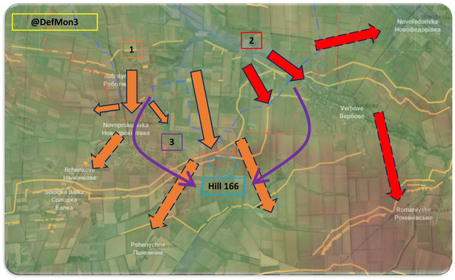 目前乌军正在全力进攻韦尔博维村南、村北的高地。此外,罗伯蒂尼东南的166高地也还在争夺之中。