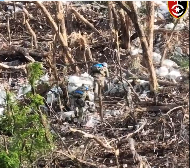 第30机械化旅的战士们先是出动无人机攻击躲在战壕内的俄军。
