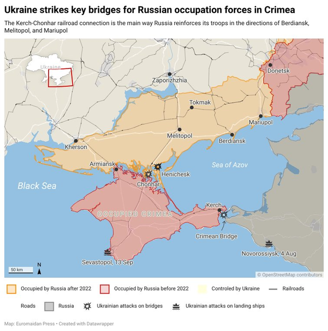 有分析称,乌军正在布局完全切断俄军的补给线,收复克里米亚,打登陆舰是其中一个重要环节。