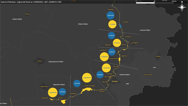 首先来看看法国OSINT评估的,乌克兰和俄罗斯自6月4日以来的领土收益: