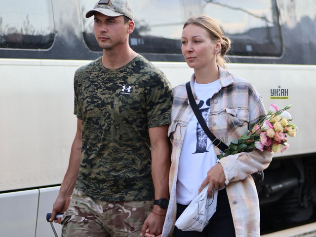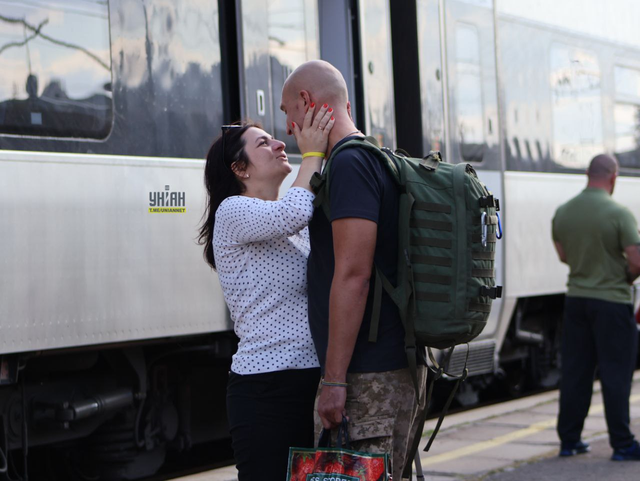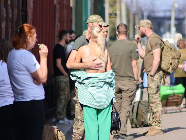 在克拉马托尔斯克火车站,即将被部署到前线的乌克兰士兵向亲人告别。