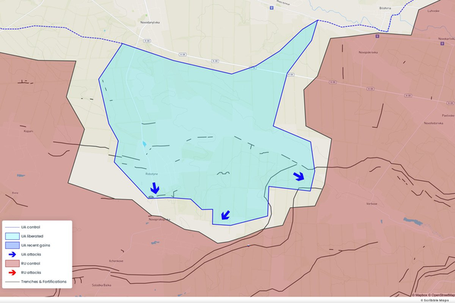 南线西战场,昨天提到的,两个俄罗斯方面的消息源称乌军第47旅已经攻入了科帕尼村,目前仍未得到证实。乌克兰博主的消息是他们距离科帕尼2公里。
