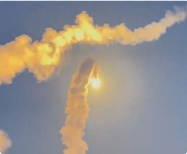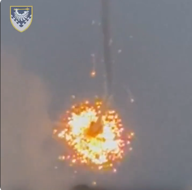下图为乌克兰防空导弹摧毁俄罗斯巡航导弹的场景,很漂亮的画面。