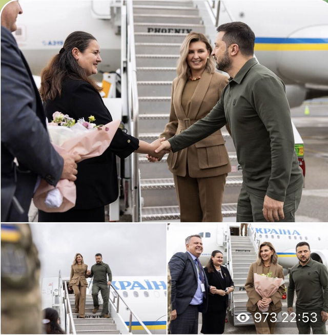 乌克兰泽连斯基总统携夫人抵达纽约,乌克兰驻美大使机场迎接