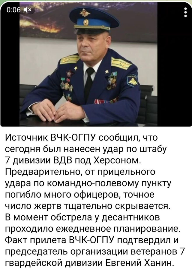俄罗斯近卫第七师叶夫根尼·哈宁退伍军人主席组织证实了契卡-国家政治保卫总局抵达的事实。