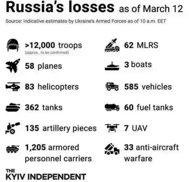 自打3月2日之后,俄罗斯已经不再公布人员伤亡情况了,这说明他们的数据不会太好看。