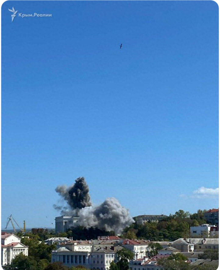 “9月22日中午12时左右,乌克兰武装部队成功袭击了位于临时占领的塞瓦斯托波尔的俄罗斯联邦黑海舰队总部。”