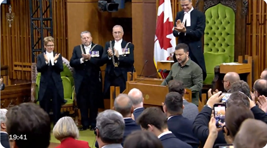 泽连斯基在加拿大议会发表演讲。