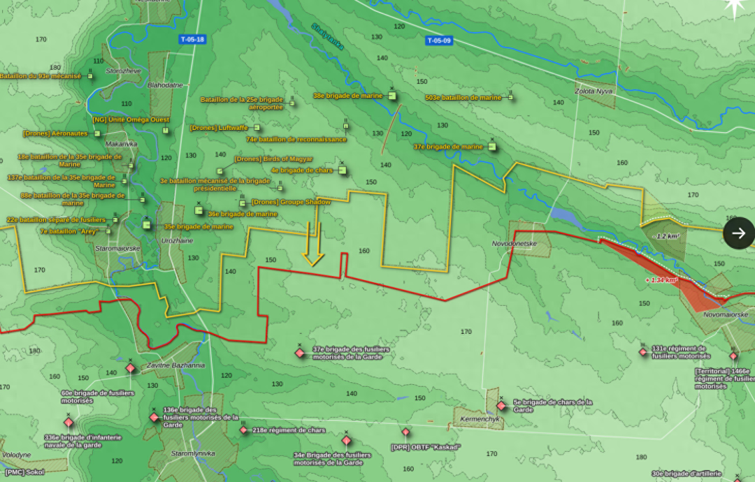 顿涅茨克方向,在马林卡以南,争夺大型据点控制权的战斗仍在继续, 据俄罗斯军官报告并经 OSINT 分析,证实乌克兰部队在这里取得了阵地收益。