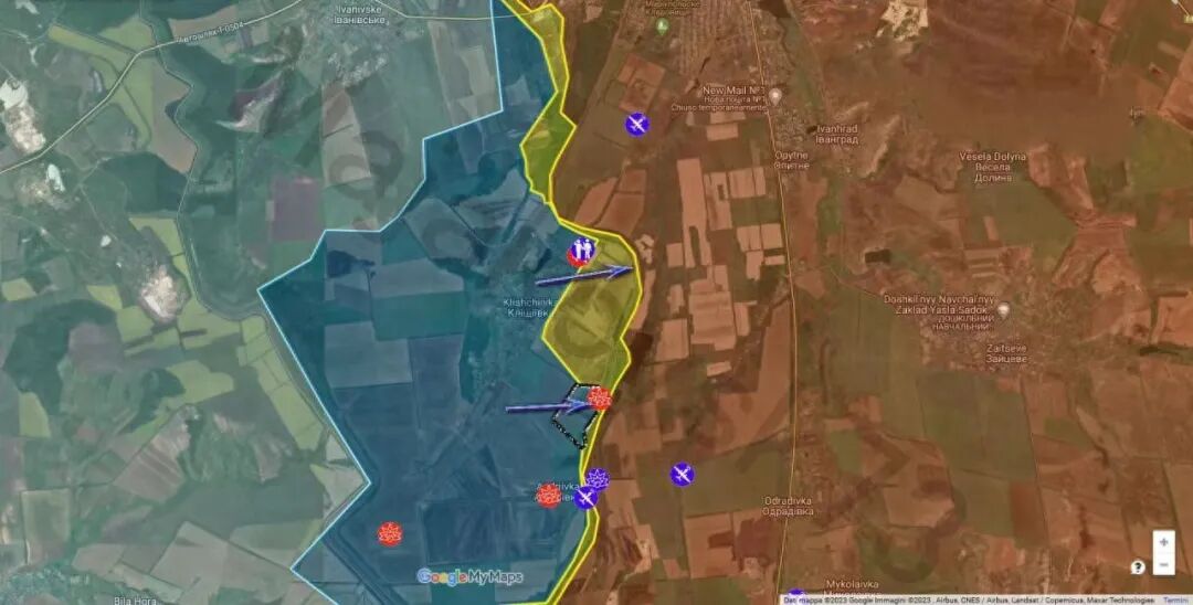 克里什奇夫卡(即K村)方向,乌军已经翻过铁路路堤,向南大门挺进。