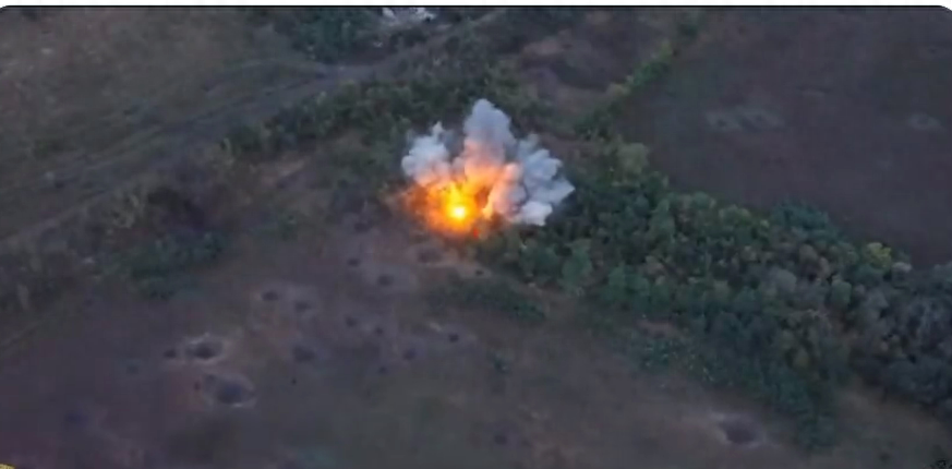 乌克兰炮兵在反击炮火中击中并摧毁了俄军一个大型炮兵射击阵地,其中一架 2S5 Giatsint-S 被摧毁。