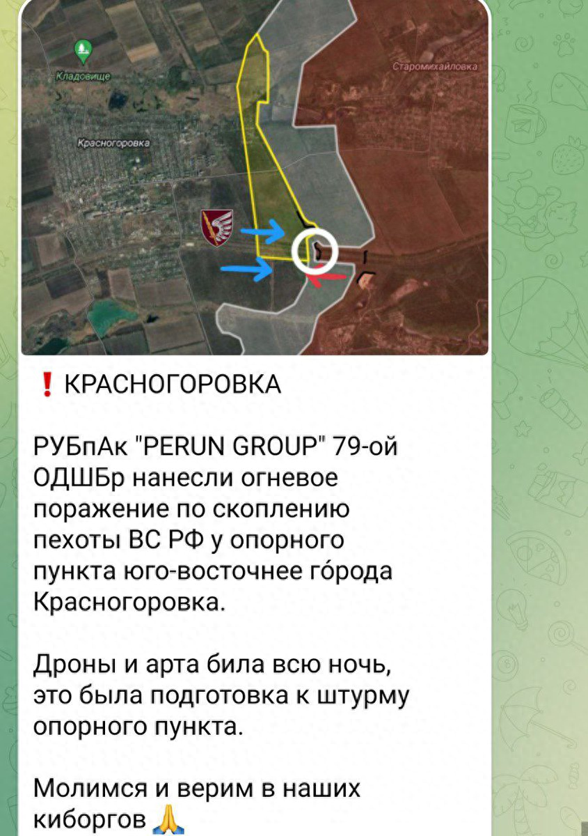 这条战线上最大的一个亮点,是乌军昨日开辟了一个新战场,第 79 独立突击旅向克拉斯诺霍洛夫卡(Krasnogorovka)镇东南部据点附近的俄军阵地发起了进攻。这个镇子位于E50公路的皮斯基和马林卡之间,是通向顿涅茨克市的卫星镇。