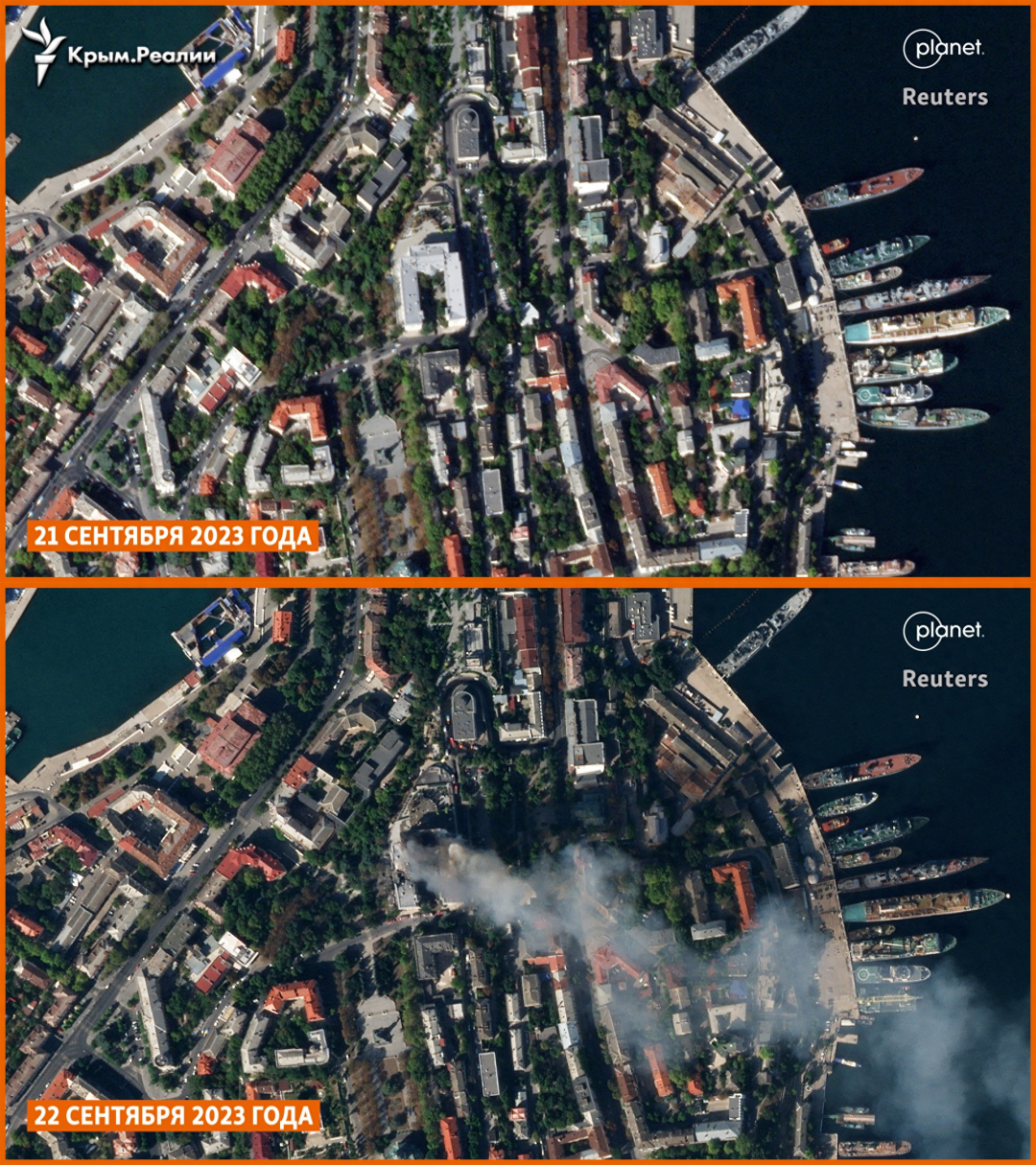 新乌泽尔尼(Novoozerny)的俄罗斯军事基地上空也升起浓烟。