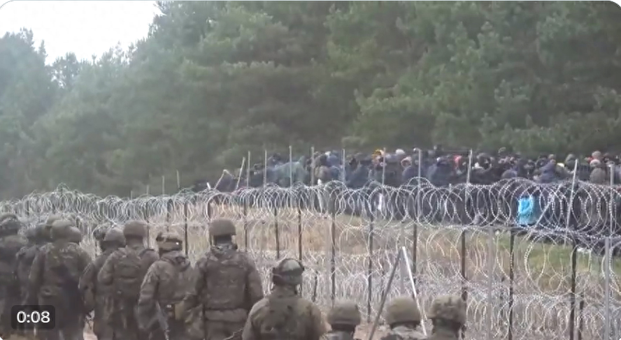 波兰国防部昨天公布了白俄罗斯方面袭击边境的视频,并表示: