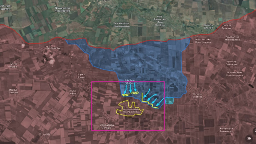 南线战场,根据地理和卫星图像,乌军很可能已经控制了新普罗科皮夫卡和罗伯蒂尼之间的森林,并推进到新普罗科皮夫卡北部郊区。