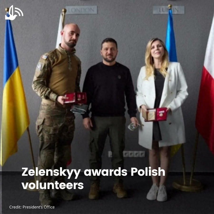从加拿大回国后,泽连斯基向波兰记者Bjanka Zalewska和医务志愿者Damian Duda-in Lublin颁发了国家奖,并说:
