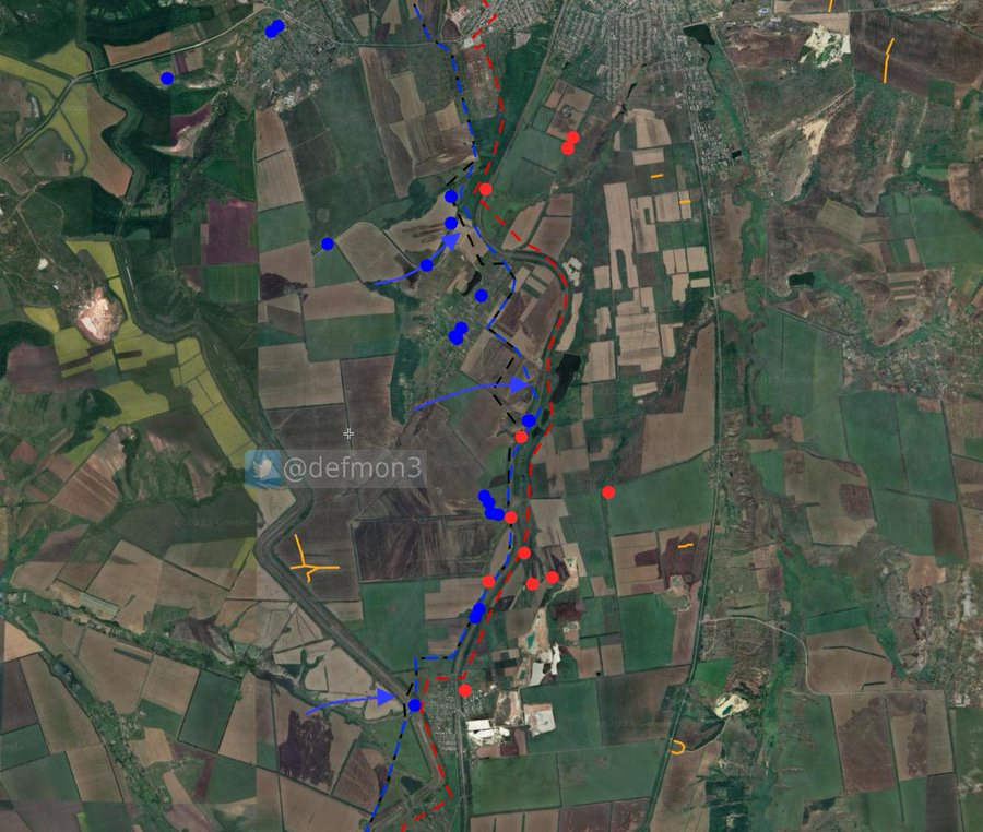 库尔久米夫卡方向,乌军从西面包围了这个村子,并可能已在运河以东建立了一个桥头堡。