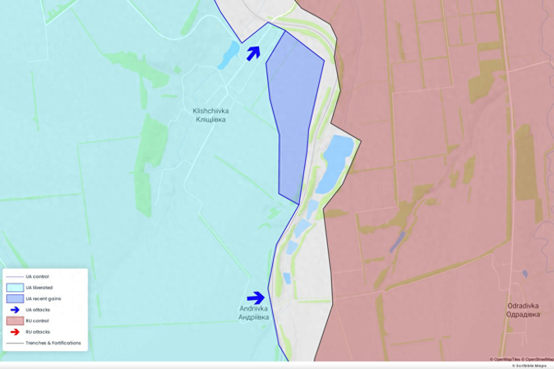 巴赫穆特前线,K村以东靠近铁轨的地区现已证实在乌军的控制之下,目前乌军正在铁路以东朝T0513(巴赫穆特-霍尔利夫卡公路)推进。