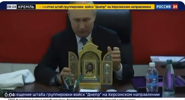 普京视察俄军司令部时,给俄军将领赠送了一个镇国之宝—— 19世纪俄罗斯帝国最成功的国防部长圣象,以此来鼓舞士气。