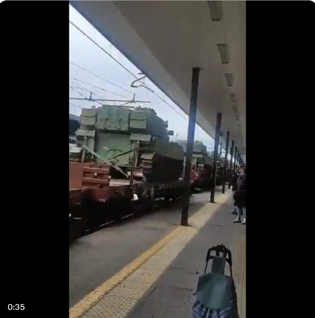 运往乌克兰的M109L 155 毫米自行榴弹炮,正在光天化日之下通过意大利火车站站台。