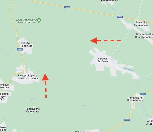 科帕尼方向, 乌军继续向村子发动进攻,昨日乌军炮兵摧毁了俄罗斯军队的2辆装甲运兵车和一个空降突击群。 目前新普罗科皮夫卡-科帕尼一线的战斗主要沿着森林地带向T0408公路 Novoprokopivka 和 Ilchenkovo 村方向发展。