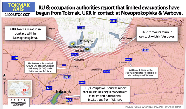根据俄方的消息,托克马克的行政办公室、商店和市场昨天起将暂停营,家庭和教育工作者已经开始有限度地撤离。