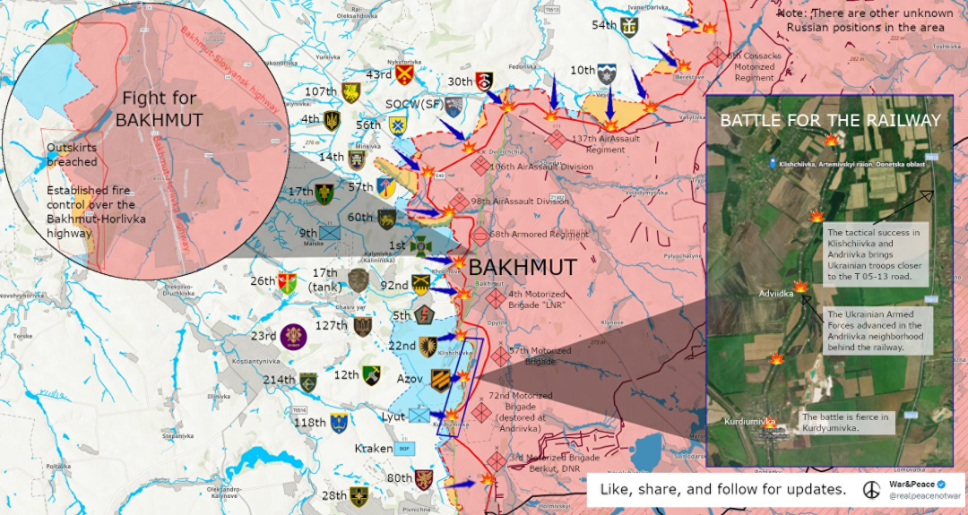 最后放一张巴赫穆特双方的兵力部署图供大家参考。