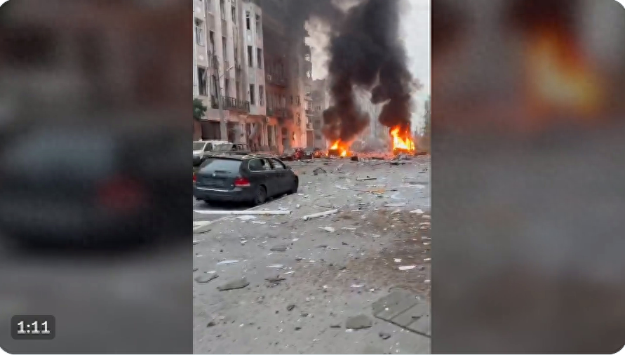 在格罗扎村的惨案发生后不到24小时,另一场毁灭性的袭击又发生了,俄军向哈尔科夫市中心发射了两枚导弹。