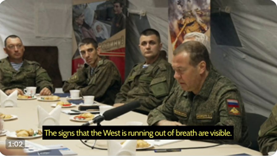 梅德韦杰夫为前线官兵打气:“再熬一下,西方已经快不撑不住了”。