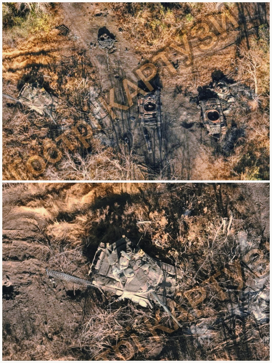 此外,马基夫卡(卢甘斯克地区)昨天的战斗异常激烈,从乌克兰的视频以及东部集团军发言人的晚间报告来看,俄罗斯人在这里输得很惨,在2平方公里的范围内留下10多辆破损坦克。其中包括T-90M“突破”(MBT)主战坦克。