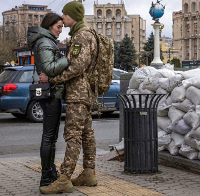 一位乌克兰士兵,在去前线前,与他的女朋友在基辅车站吻别。
