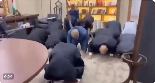 加沙的巴勒斯坦领导人进行sujud al shukr欢呼胜利,跪拜感谢真主安拉。