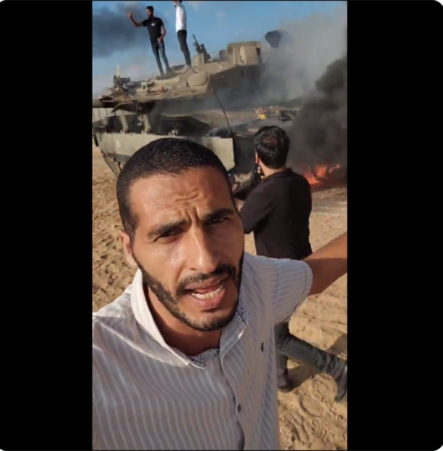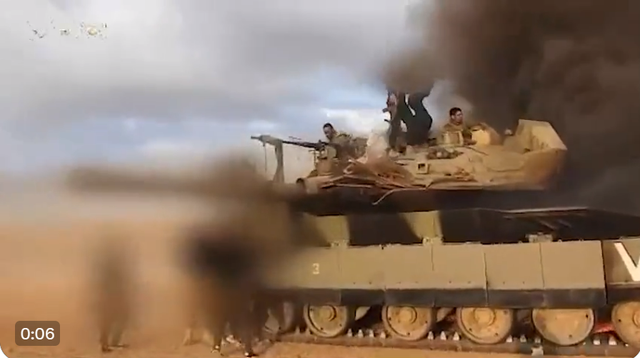 猝不及防的以色列国防军被打懵了,设在边境的军事基地很快就被哈马斯占领。整排的战车甚至都没来得及出动。