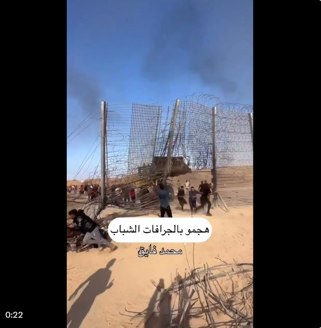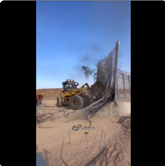 他们使用推土机冲破边境围栏,进入以色列境内。
