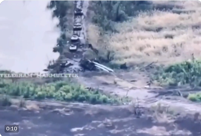 一方面,俄军动用三个营的兵力,并配备了空中支援。在空袭和大炮轰炸三个多小时后,由9辆装甲和坦克列成纵队进攻vodyne,结果头车不小心栽到浮桥的底下,后面的纵队被乌克兰炮火和无人机绞杀了。