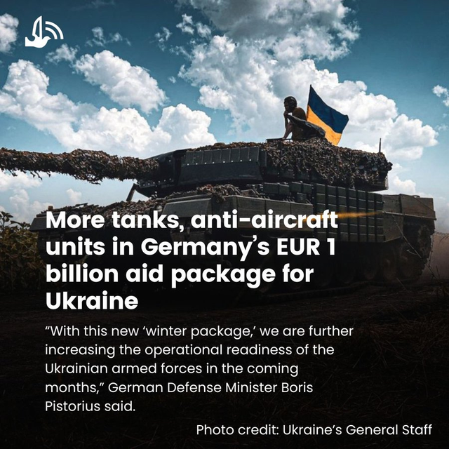 德国宣布向乌克兰提供新的“冬季一揽子”军事援助,其中包括10辆豹1A5坦克、3辆豹式防空坦克、20辆医疗后送车和15辆装甲车。