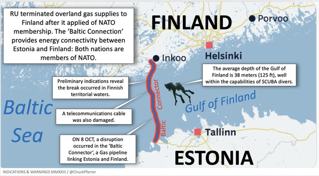 芬兰和爱沙尼亚之间的天然气管道 "波罗的海连接线 "开始泄漏。芬兰以犯罪破坏为前提展开调查。