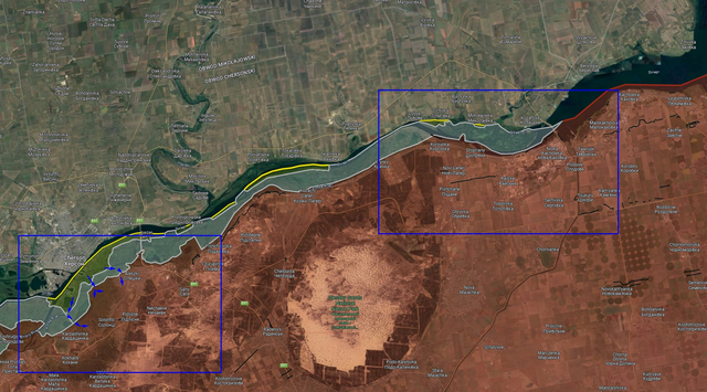 第聂伯河前线,乌军在下图所示的方向已经集结了10000多名军人和很多的装备。