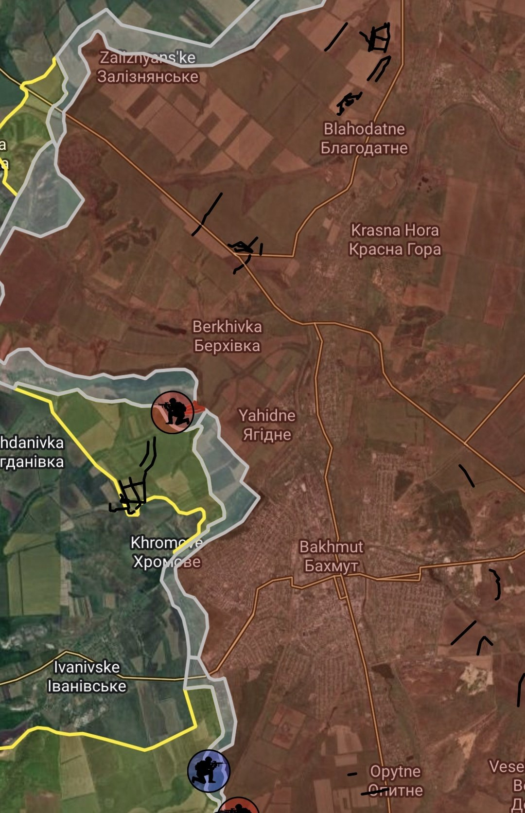 巴赫穆特前线,北翼的战斗开始转移到别尔希夫卡(Berkhivka)以北。