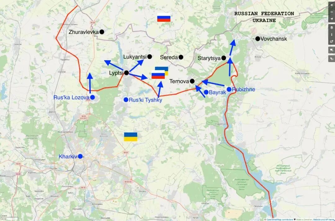 过去24小时,乌军在哈尔科夫前线势如破竹,一日连下三城,收复了哈尔科夫东北方向的pytomnyk、lyptsi,以及俄乌边境的重要城镇ternova。