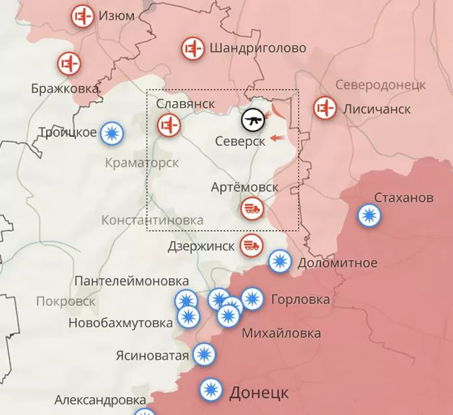 总体来讲,我认为除非巴赫穆特等地陷落,否则俄军很难威胁到乌军在乌东的防守核心斯拉维扬斯克。