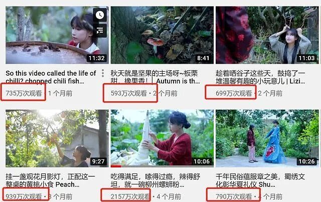 我个人开始关注李子柒,是她火爆youtube的那阵子。