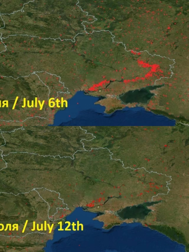 由下图NASA卫星拍摄到的俄军炮击情况(红色部分),可以清晰的看到,他们的炮击已经大幅度减少,说明海马斯对军火库的打击,的确大大削弱了俄军的炮击能力。